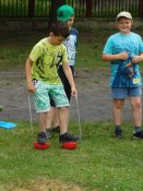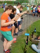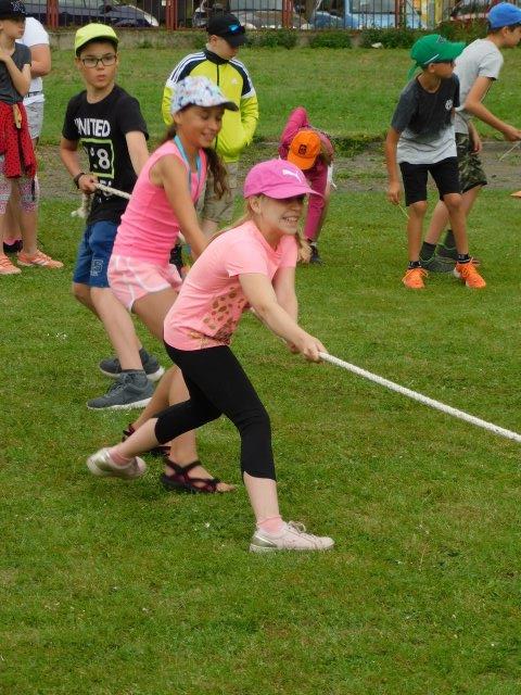 Žáci druhého stupně připravili pro žáky prvního stupně 48 stanovišť, kde ti mladší plnili nejrůznější úkoly – například běh v běžkách, běh s kufrem, skákání v pytlích a další. Odměnou za každý úkol byly lístečky, které posloužily jako peníze ve stáncích.