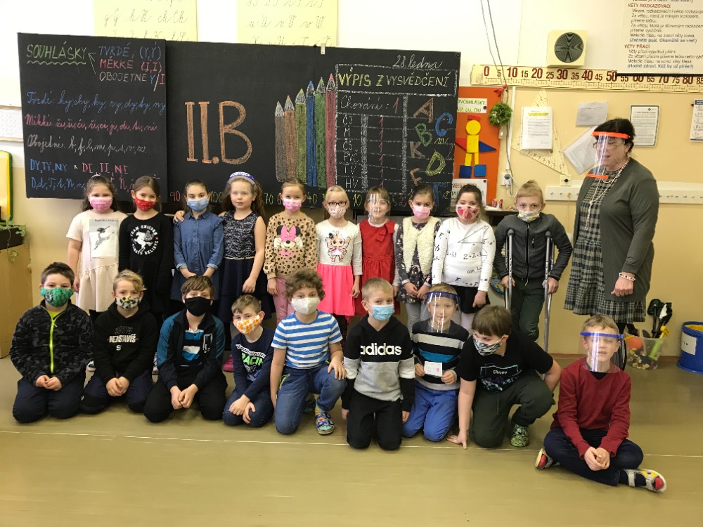 Dnešní den 28. 1. 2021 byl pro všechny žáky velmi slavnostní, radostný i výjimečný. Pro pololetní vysvědčení si mohli přijít pouze žáci prvních a druhých ročníků. Když nastala poslední vyučovací hodina, žáci netrpělivě ve svých lavicích vyčkávali na předání pololetního vysvědčení. I když toto pololetí bylo hodně náročné, neboť i nás na podzim zastihla výuka distanční, tak se žáci ze všech sil do učení zapojili a na pololetním vysvědčení našli všichni z II. B samé jedničky.
