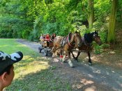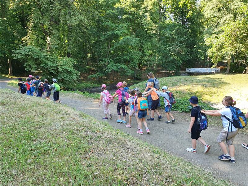 Posilnili jsme se a zase postupovali dál do nitra parku. Naše kouzelná průvodkyně náhle na jedné krásné louce pro nás vybalila různé hudební nástroje. V mžiku jsme nacvičili kouzelné představení, v němž si zahráli úplně všichni. Hráli jsme, tančili a splývali s přírodou, která nás vřele přijala. Když jsme zakončili naše představení, objevila se před námi bryčka tažená dvěma krásnými koňmi Kačenkou a Cipískem. Nasedli jsme a vůz nás zase pomalu vrátil do našeho století. Bylo to krásné a poučné putování časem. Císaře jsme už sice nezastihli, ale věříme, že vzácná návštěva proběhla přesně podle představ pánů Černínů.