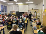 Městská policie Žatec nás navštívila ve čtvrtek 21. října za asistence koordinátorek prevence, které pravidelně jednou měsíčně navštěvují žáky třetích ročníků a zasvěcují je do tématiky třídění odpadu: plastů, papíru, skla, bioodpadu, baterií a dalších produktů, které vyprodukuje každá domácnost. Informují žáky, jak je důležité odpad třídit a co se vše po recyklaci vrací zpět do oběhu. Žáci každý měsíc splní jeden úkol k danému tématu. Formou otázek a odpovědí si ověří, zda třídění daného odpadu pochopili a zároveň se připraví na závěrečný test, který je čeká na konci školního roku, kde ti nejlepší budou i vyhodnoceni zajímavými cenami. Hlavním úkolem těchto návštěv je žáky naučit, jak správně se starat o své okolní prostředí, jak si chránit přírodu a žít s ní v souladu.
