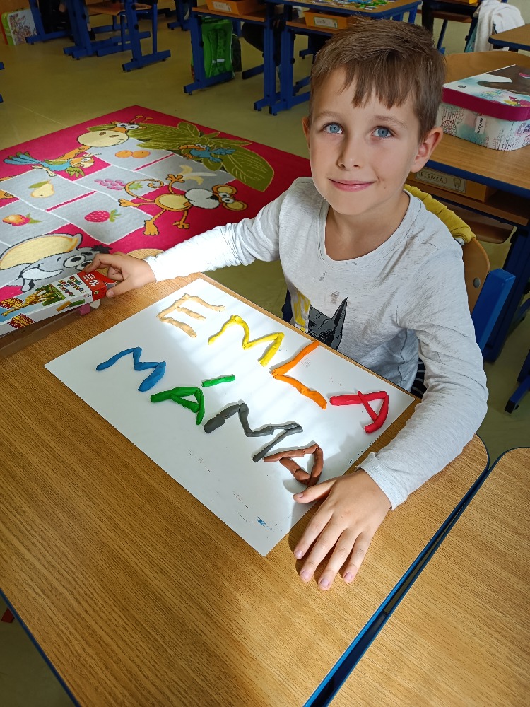 Už skoro dva měsíce jsou z nás žáci první třídy. Za tu dobu jsme se toho spoustu naučili. Proto jsme si pro dnešní hodinu Člověk a svět práce vybrali práci s modelínou. Díky modelíně jsme si mohli vymodelovat a osvojit již probraná písmenka. A jaká to byla? Představte si, že už umíme A, E, M a dokonce i L. Nejdříve jsme zkoušeli modelovat každé písmeno zvlášť. Potom nám paní učitelka ukázala, že z již probraných písmen, můžeme vymodelovat slovo MÁMA! Paní učitelka naše výtvory zdokumentovala a vy si je můžete prohlédnout. Už se těšíme na další tvoření a poznávání nových písmen.