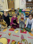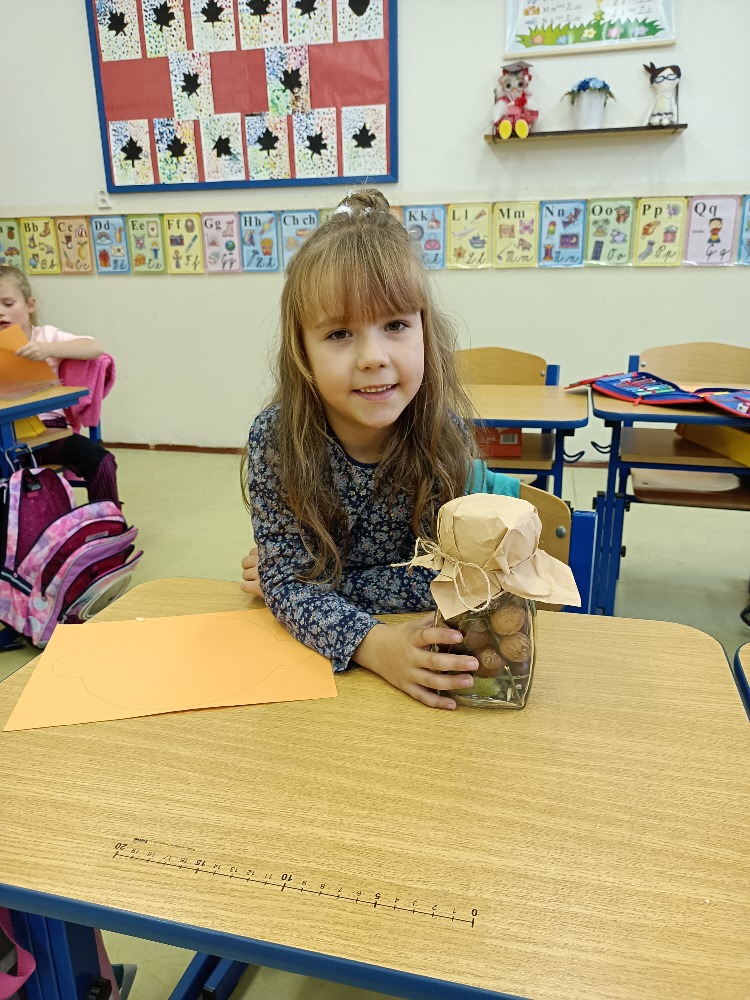 Ještě než jsme se s dětmi rozutekli na podzimní prázdniny, rozhodli jsme se, že společně zavaříme podzim. Každý žák si přinesl několik věcí, které symbolizují podzim. Ve třídě se nám sešly barevné listy, kaštany (některé měly i slupku a tak jsme museli dávat pozor, abychom se nepíchli), žaludy, větvičky, šípky, bukvice a dokonce i houbu. Paní učitelka přinesla do školy sklenici na zavařování. Společně jsme do sklenice postupně vložili podzimní symboly. Když byla sklenice plná, paní učitelka ji zavřela a my ji zavařili kouzelnou básničkou, kterou jsme se naučili v hodině českého jazyka. Protože se všechny podzimní věci do sklenice nevešly, každý z nás si zavařil svoji podzimní skleničku domů. Nyní už se těšíme, co dalšího společně zavaříme.