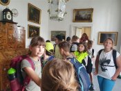 V letošním školním roce jsme měli docela hodně aktivit, ale chyběla nám ještě návštěva nějakého zámku. A proč jezdit daleko, když jeden takový pěkný máme prakticky za humny. A bylo rozhodnuto. Cílem naší dnešní výpravy byl zámek v Krásném Dvoře. Paní průvodkyně na nás čekala a hned s námi vyrazila na prohlídku komnat. Pokoje byly krásné, vkusně a účelně zařízené. A co víc? Téměř každý pokoj měl tajný vchod, který byl využíván pouze členy rodu Černínů. I my jsme jedněmi takovými tajnými dveřmi mohli projít. Zajímavostí však měl zámek víc než dost. A také spoustu obrazů. Na mnohých z nich byli vyobrazeni lovečtí psi. Paní domu jich vlastnila dvě stě, všechny je znala jménem, pečovala o ně a hýčkala si je. Paní průvodkyně si hýčkala zase nás. Po prohlídce zámku s námi šla ještě na cestu parkem. I ten skýtal mnoho atraktivit a zajímavostí, které byly ve své době opravdu jedinečné. Viděli jsme tisíciletý dub, krásnou ptačí voliéru, důmyslnou síť rybníků a vodopádů, gloriet, boží muka, obelisk a … A víc už vám nebudeme vyprávět, protože když budete chtít, můžete si vyjet na takový parádní výlet sami. A uvidíte, že si ho užijete stejně báječně jako my.