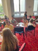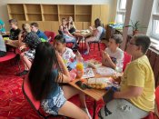 Dne 9. 6. jsme se rozhodli podniknout nové dobrodružství a přespat u nás ve škole. V plánu bylo mnoho aktivit. Setkali jsme se v dohodnutý čas před vchodem do školy a šli jsme se ubytovat do školní družiny. Měli jsme s sebou spacáky, karimatky, plyšáky na spaní a také nějaké dobroty na zpříjemnění večera. Navštívili jsme náš školní bazén, a ten, kdo neplaval, šel na počítače a pohrát si s roboty. Poté jsme se navečeřeli a zasoutěžili jsme si. Večer nesměla chybět noční bojovka, kterou si všichni moc užili. Poté jsme si pustili pohádku na dobré sny a ulehli jsme do našich pelíšků. Ráno nás čekala snídaně a také jsme si zazpívali a zatancovali. Přespání se nám moc líbilo a užili jsme si ho. Domů jsme odcházeli unavení, ale plní nových zážitků.